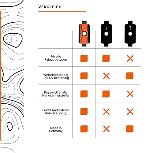 Tout en un : vous obtenez une solution simple et universelle pour fixer votre store de caravane en toute tempête. Qu’il s’agisse de surfaces asphaltées ou de sols mous, le support de store le plus sûr. Sans outils