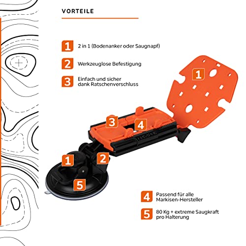 Specification: Cosador Fixation Universelle 2 en 1 pour auvent – Ventouse puissante et ancrage au Sol – Accessoire de Camping Professionnel – Accessoire de Camping-Car