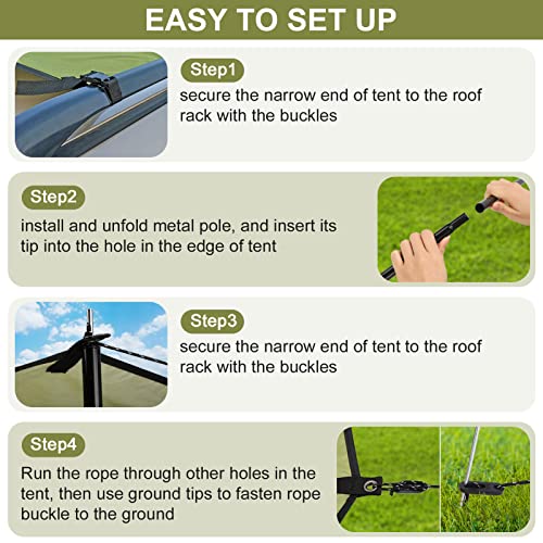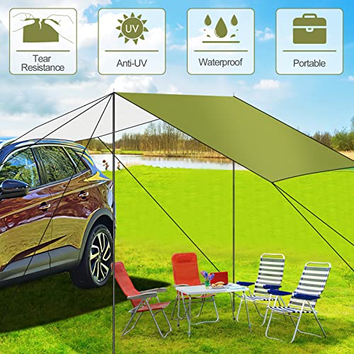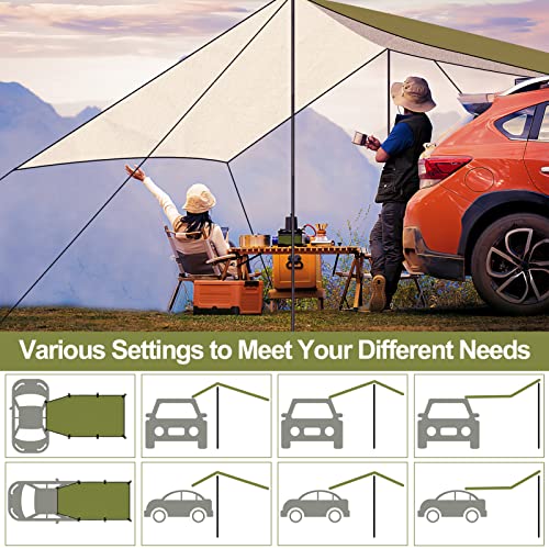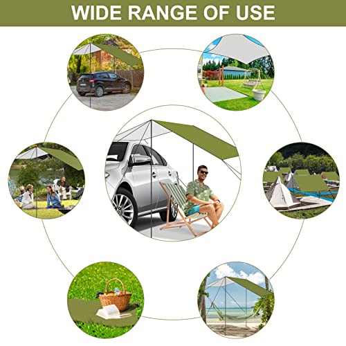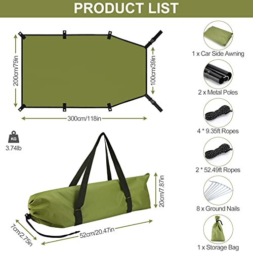 Specification: zootop Auvent de voiture Abri de soleil Imperméable Auvent de voiture Tente de camping avec tissu Oxford enduit d’argent 210D Auvent de voiture Bâche de bâche réglable pour SUV Minivan 79x118in (Vert)