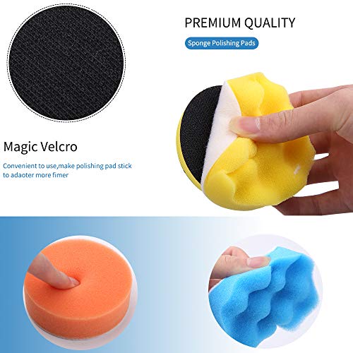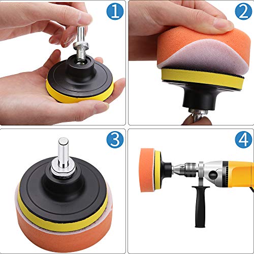 【Quantité abondante】 Le paquet comprend 30 pièces de tampons de polissage éponge de 3 pouces, 2 pièces de tampons de polissage en laine, 2 pièces d’adaptateur de forage, 2 pièces de tampons à crochets et boucles, 31 pièces au total.