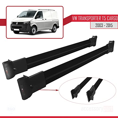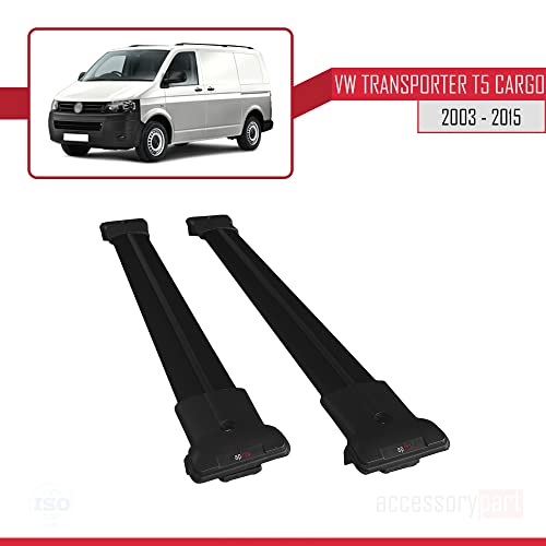 Specification: accessorypart Compatible avec Volkswagen T5 Transporter 2003-2015 Fly Model Barres de Toit Railing Porte-Bagages de Voiture Noir Aluminium 2 Barres